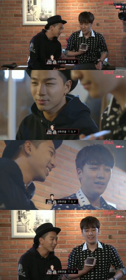태양과 승리는 4일 오후 8시 포털사이트 네이버를 통해 진행된 네이버 스타캐스트 1주년 특집 생방송에서 비주얼은 내가 낫지 부분에 탑이 뽑힌 기념으로 전화연결을 했다.