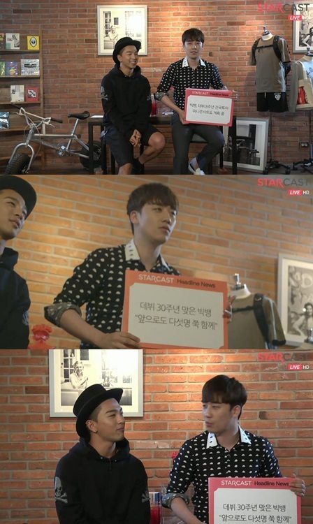 태양과 승리는 4일 오후 8시 포털사이트 네이버 라인을 통해 진행된 스타캐스트 1주년 특집 태양X승리 스타캐스트 온에어에서 "롤링스톤즈 공연을 보면서 우리도 저렇게 됐으면 좋겠다는 생각을 했다"고 밝혔다.