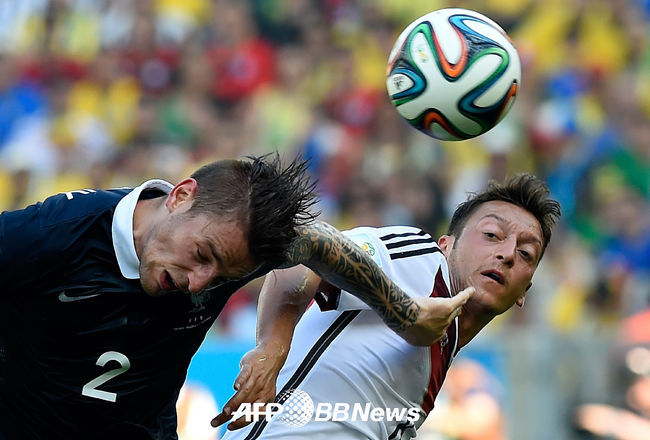전반 프랑스 마티외 드뷔시와 메수트 외질이 공중볼 다툼을 하고 있다./photo@osen.co.kr