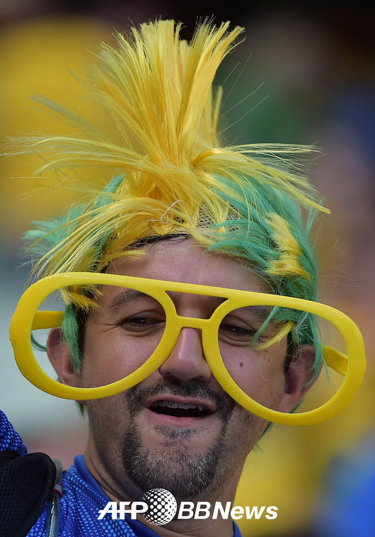 경기에 앞서 브라질 축구팬이 열띤 응원을 펼치고 있다.