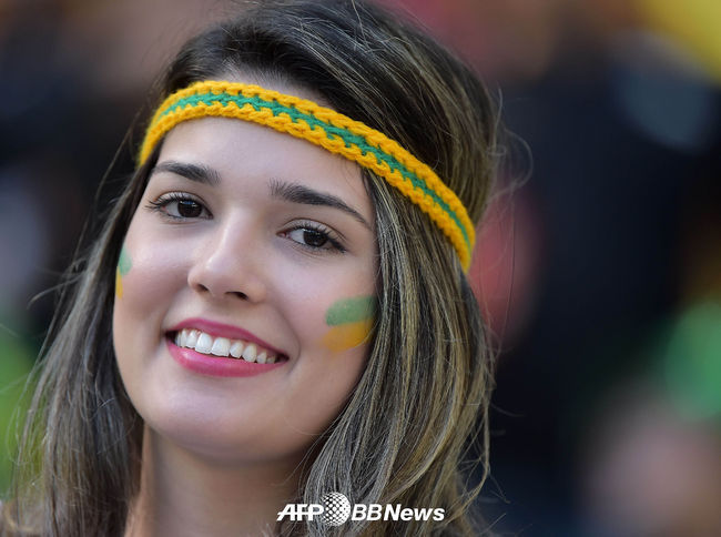 경기에 앞서 브라질 여성팬이 열띤 응원을 펼치고 있다.