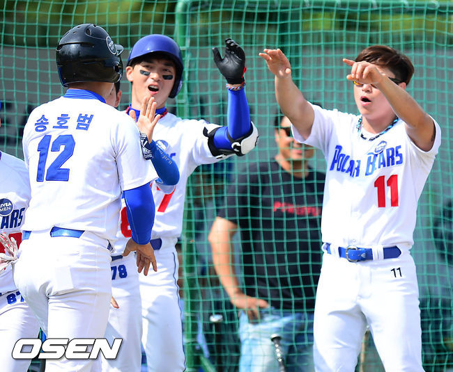 3회말 1사 이후 송호범의 득점에 폴라베어츠 선수들이 기쁨을 나누고 있다.