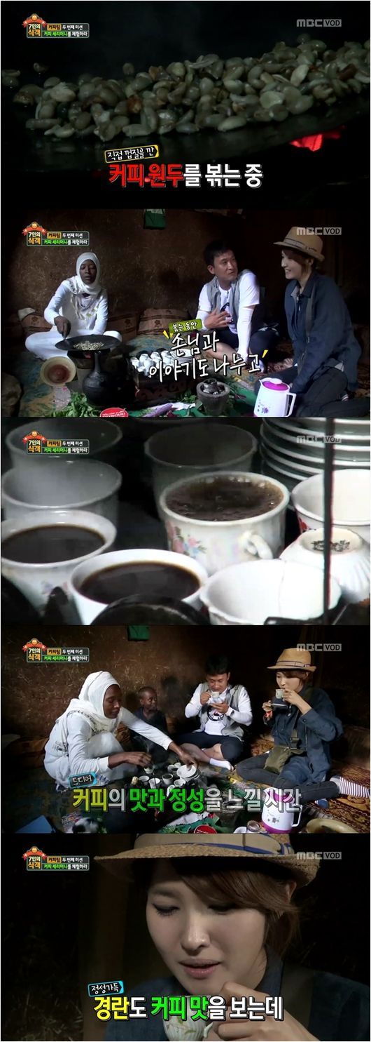 흔히 마실 수 있는 커피지만 커피의 고장이라고 불리는 에티오피아인데다가 기계가 아닌 사람의 손으로만 만들어진 커피의 맛은 안방극장까지 전달되는 듯 했다. 음식을 통해 문화 탐방을 하는 이 프로그램이 진면목이 커피 한잔으로 여실히 드러난 것. 커피 의식을 통해 맛과 멋과 그리고 인간미가 느껴졌던 시간이었다.