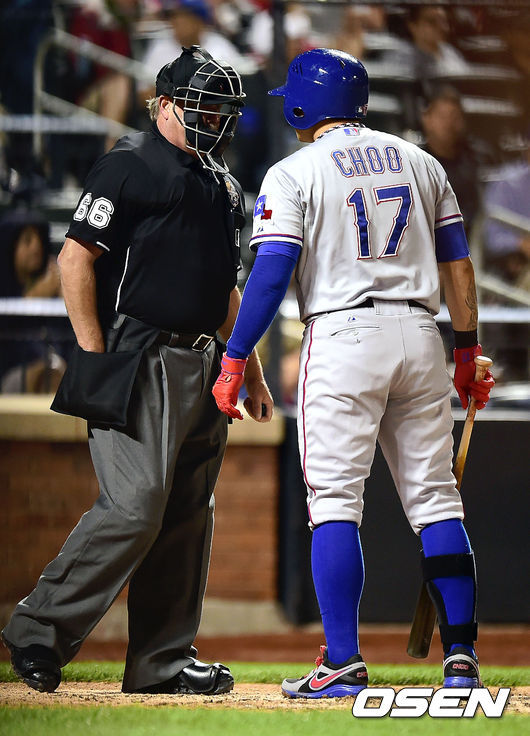 메이저리그 투구 추적 시스템을 보여주는 '게임데이'를 봐도 블랙의 5구째는 스트라이크존에서 크게 벗어났다. 명백한 볼에도 조이스 구심은 잠깐 뜸을 들이더니 추신수를 삼진으로 돌려보냈다. 추신수의 표정은 혼란스러웠다. 아쉬운 마음에 덕아웃으로 향하는 발걸음도 무겁기 짝이 없었다.