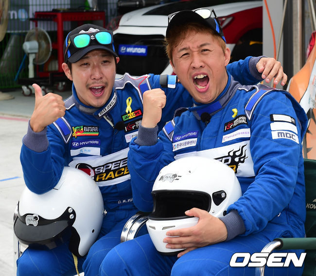5일 오후 인천 연수구 국제업무지구역 인근에서 열린 코리아 스피드 페스티벌(KSF) 피트워크 행사에서 하하와 정준하가 포즈를 취하고 있다.