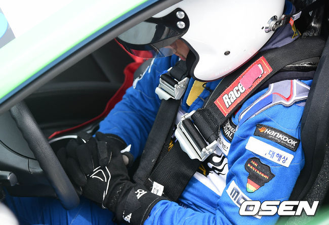 5일 오후 인천 연수구 국제업무지구역 인근에서 열린 코리아 스피드 페스티벌(KSF) 예선 경기에서 하하가 피트인 중 차에서 기도를 하고 있다.