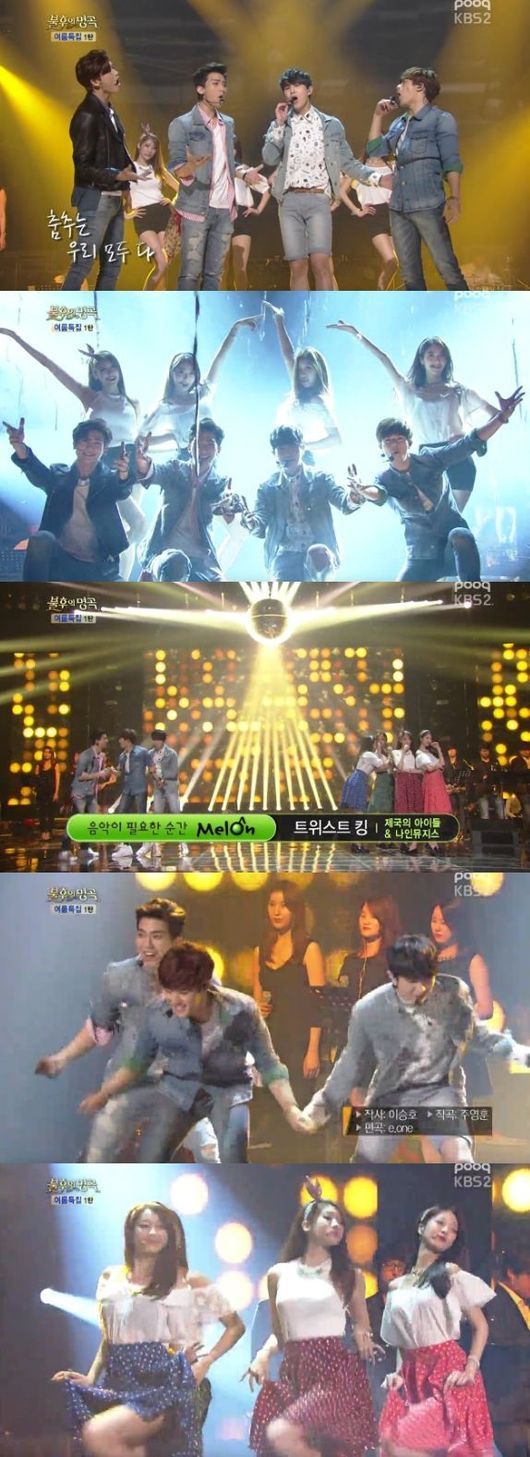 두 그룹은 5일 오후 6시 5분 방송된 KBS 2TV '불후의 명곡-전설을 노래하다' 여름 특집 1탄에서 터보의 '트위스트 킹'을 선곡해 오프닝 무대를 뜨겁게 달궜다.