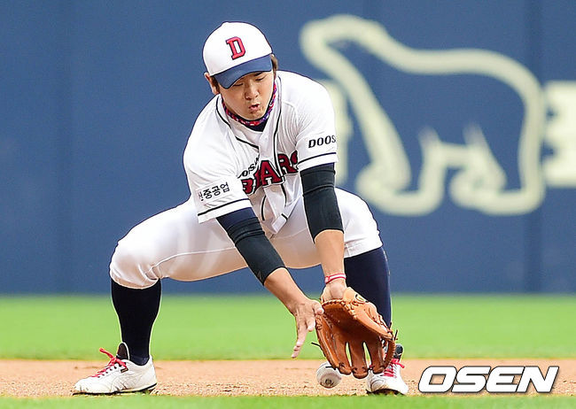 1회초 삼성 공격 무사 1루 상황 박한이의 내야 땅볼 타구를 두산 3루수 최주환이 가랑이 사이로 빠트리는 실책을 범하고 있다. 이 실책으로 1루 주자는 홈까지 파고들어 득점.