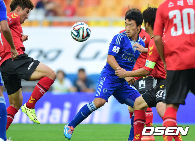 5일 오후 수원 월드컵경기장에서 열린 '현대오일뱅크 K리그 클래식 2014' 수원 삼성과 경남 FC의 경기 전반 고차원이 경남 문전 앞에서 수비들과 볼다툼을 하고 있다.