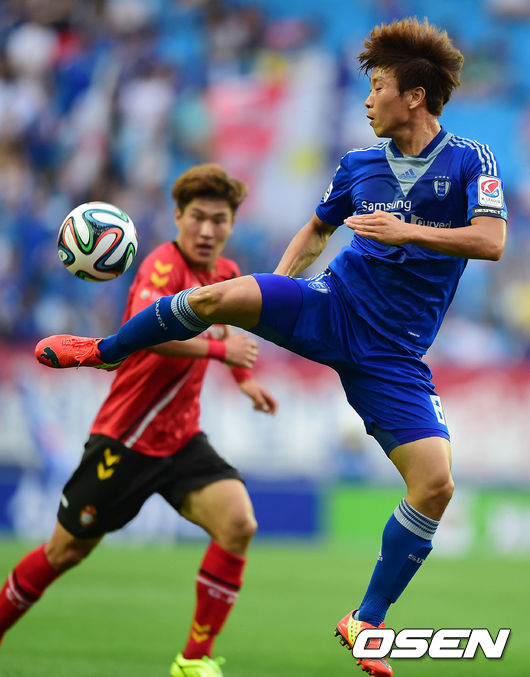 5일 오후 수원 월드컵경기장에서 열린 '현대오일뱅크 K리그 클래식 2014' 수원 삼성과 경남 FC의 경기 전반 김두현이 볼을 다루고 있다.