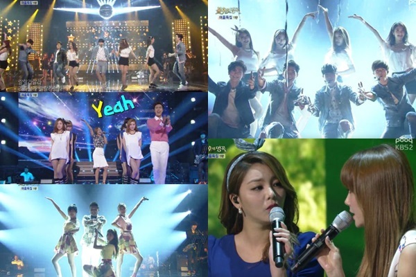 이날 '불후의 명곡'은 여름 특집으로 대체적으로 쾌활하고 신나는 분위기로 꾸며졌다. 첫 번째로 무대에 오른 제국의아이들과 나인뮤지스는 터보의 '트위스트 킹'을 선곡해 오프닝 무대를 뜨겁게 달궜다. 제국의 아이들은 청 남방으로, 나인뮤지스는 도트 무늬 치마로 복고 분위기를 한껏 발산했다. 이들은 격렬하게 어깨를 흔드는 등 초반부터 분위기를 고조시켰다. 나인뮤지스는 무대 중간 치마를 벗고 짧은 핫 팬츠로 섹시한 면모를 드러냈으며, 제국의 아이들과 마치 한 편의 뮤지컬 같은 무대를 꾸며냈다.