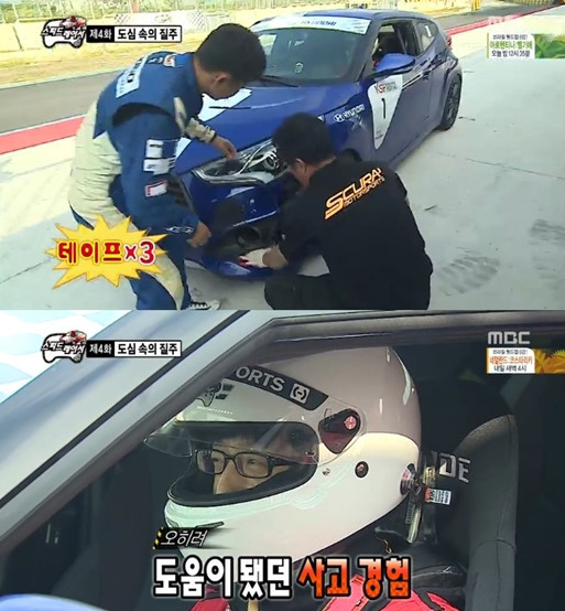 [OSEN=정소영 인턴기자] 유재석이 레이싱 경기 중 충돌사고에도 침착한 대응을 보였다.