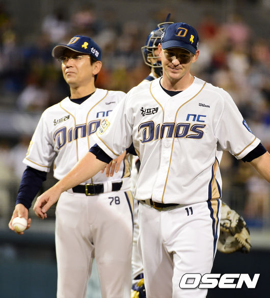 7회초 2사 2루에서 NC 찰리가 강판당하고 있다.