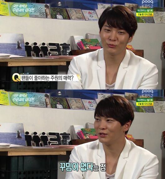 배우 주원의 자신의 매력으로 꾸밈이 없는 솔직함을 꼽았다.