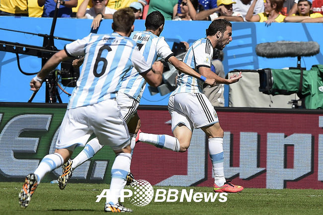 전반 아르헨티나 곤살로 이과인이 골을 성공시키고 환호하고 있다.
