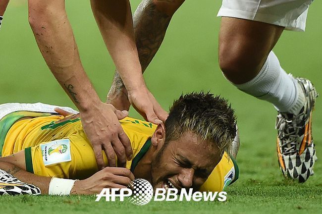 네이마르는 전날(5일) 열린 콜롬비아와의 2014 브라질 월드컵 8강전에서 후반 43분경 상대 수비수 후안 수니가의 거친 몸싸움 끝에 실려 나갔다. 수니가의 무릎이 네이마르의 허리 부분을 정통으로 가격, 결국 네이마르는 척추 골절로 4~6주간 결장이 불가피해졌다. 네이마르는 남은 월드컵에 뛰지 못할 전망이다.