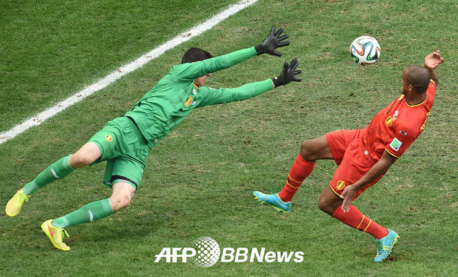 후반 벨기에 골키퍼 티보 쿠르트와가 아르헨티나의 슛을 막아내고 있다. /photo@osen.co.kr