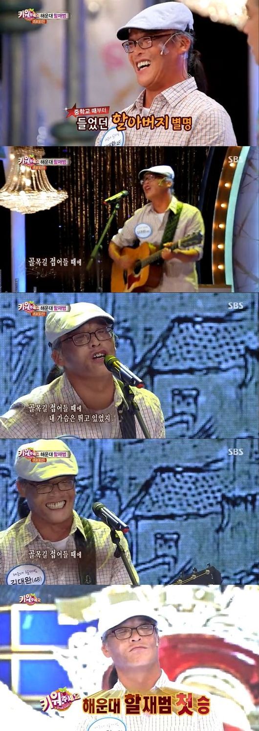 지난 5일 방송된 '스타킹'에서는 부산 해운대 백사장, 서울 청계천 등 거리에서 30년 넘게 노래를 불러 온 '할재범' 김대완 씨가 출연했다.