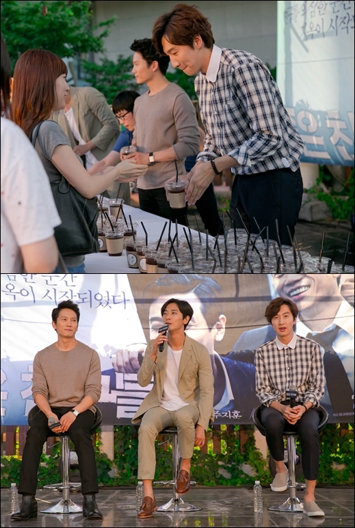 영화 ‘좋은 친구들’의 3인방 지성, 주지훈, 이광수는 지난 4일 서울 이화여대 앞 대현공원 야외무대를 찾아 예비 관객들과 뜨거운 만남을 가졌다.