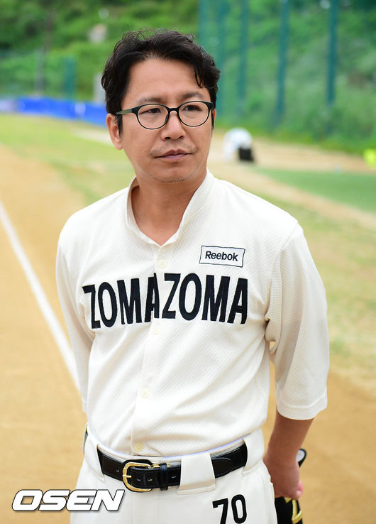 경기시작전 조마조마팀 심현섭이 진지한 표정으로 심판의 설명을 듣고 있다.