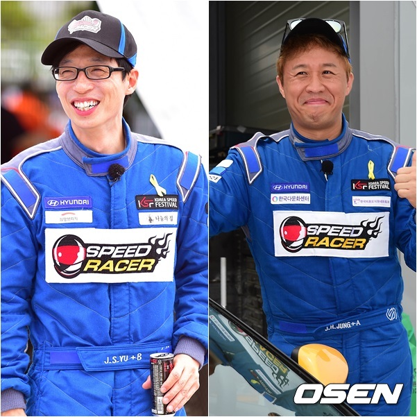 방송인 유재석이 코리아스피드페스티벌(KSF)에서 가드레일을 들이받는 사고로 완주를 실패한 가운데, 정준하 역시 경기 중 멈춰섰다.