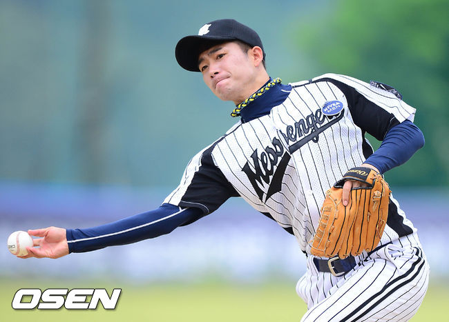 V메신져스 선발 투수 정채원이 힘차게 공을 던지고 있다.