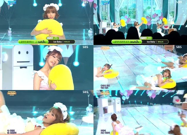 타이니지는 6일 오후 방송된 SBS '인기가요'에서 신곡 ‘아이스 베이비(Ice Baby)’를 부르며 컴백무대를 가졌다.