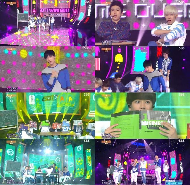 갓세븐은 6일 오후 방송된 SBS '인기가요'에서 ‘에이(A)’를 열창하며 풋풋하고 유쾌한 무대를 꾸몄다.