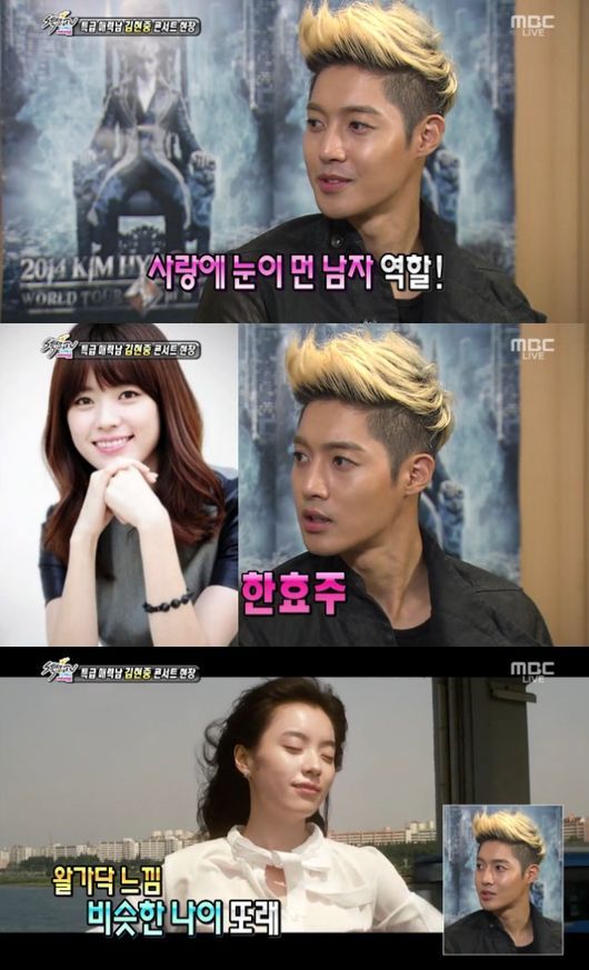 가수 겸 배우 김현중이 함께 연기호흡을 맞추고 싶은 여배우로 한효주를 꼽았다.