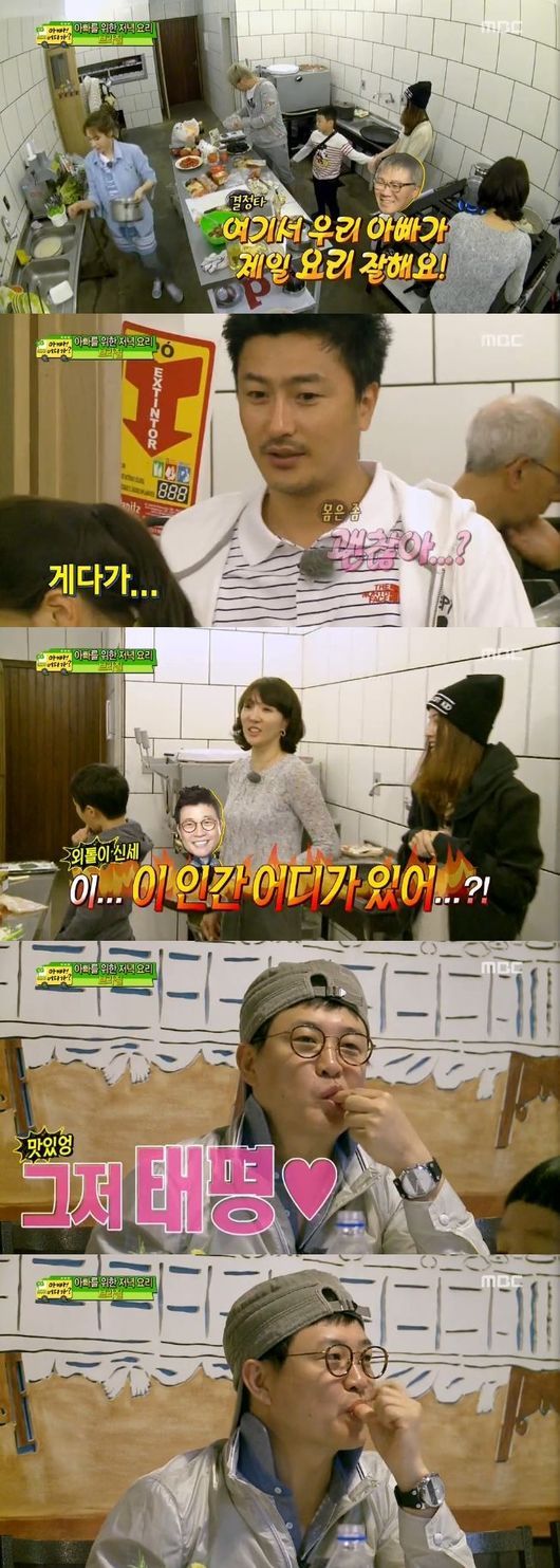 6일 오후 방송된 MBC 예능프로그램 '일밤-아빠!어디가?'(이하 '아빠어디가')에서는 요리를 하는 아내 걱정에 부엌으로 달려온 윤민수-안정환과 달리 식사를 기다리는 김성주의 모습이 그려졌다.