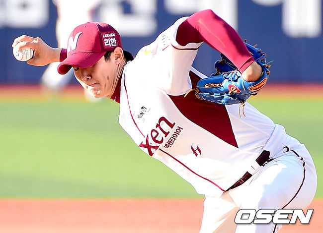 넥센 선발 김대우가 힘차게 공을 뿌리고 있다.