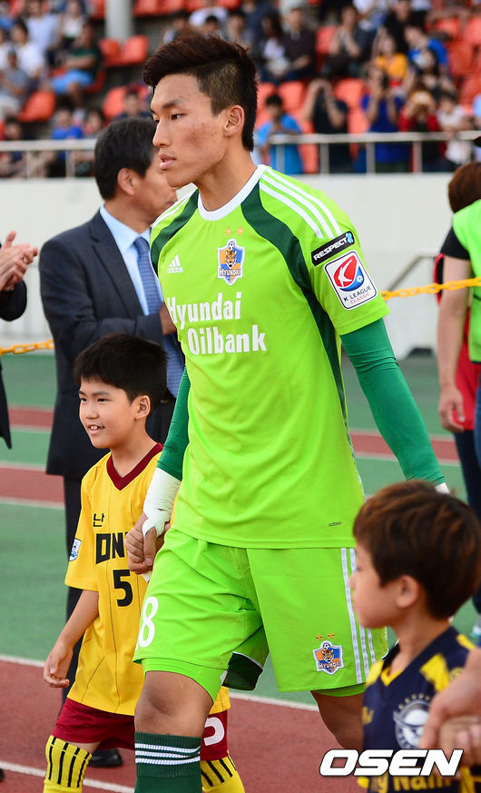 6일 오후 경기도 성남 탄천종합운동장서 열린 2014 현대오일뱅크 K리그 클래식 성남 FC와 울산 현대의 경기에 앞서 울산 김승규가 입장하고 있다.