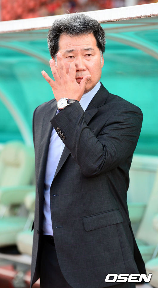 6일 오후 경기도 성남 탄천종합운동장서 열린 2014 현대오일뱅크 K리그 클래식 성남 FC와 울산 현대의 경기에 앞서 울산 조민국 감독이 그라운드를 바라보고 있다.