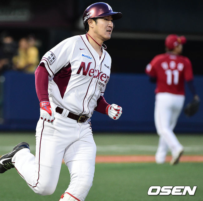 5회말 넥센 공격 1사 1, 2루 상황 유한준이 KIA 선발 임준섭을 상대로 역전 좌중월 스리런포를 날리고 그라운드를 돌고 있다.
