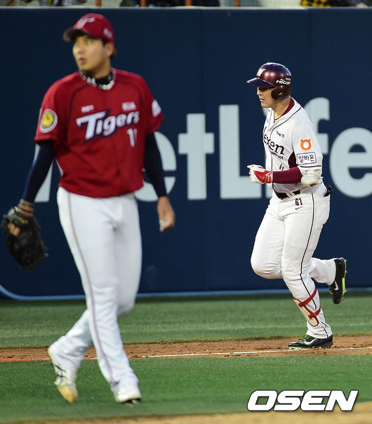 5회말 넥센 공격 1사 1, 2루 상황 유한준이 KIA 선발 임준섭을 상대로 역전 좌중월 스리런포를 날리고 그라운드를 돌고 있다.