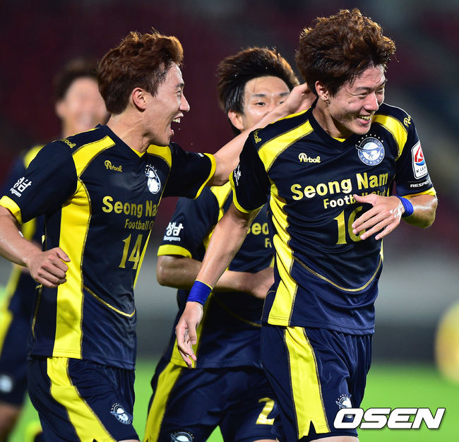 6일 오후 경기도 성남 탄천종합운동장서 열린 2014 현대오일뱅크 K리그 클래식 성남 FC와 울산 현대의 경기, 후반 성남 황의조가 동점골을 넣고 환호하고 있다.