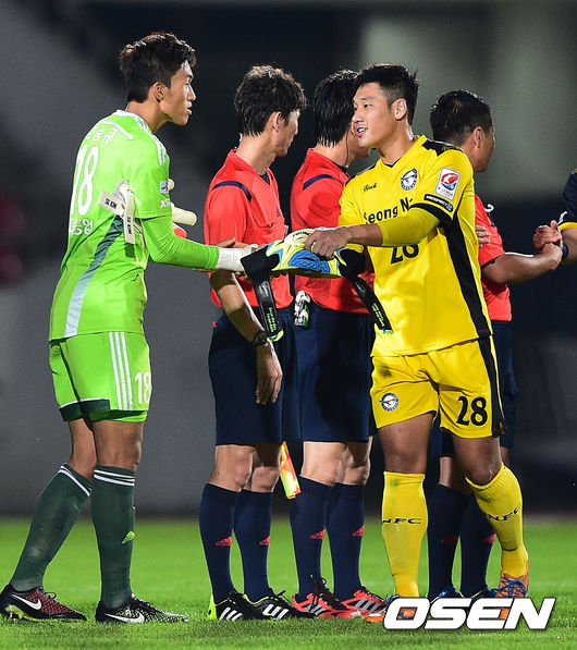 경기종료 후 울산 김승규와 성남 박준혁이 악수를 나누고 있다./ soul1014@osen.co.kr