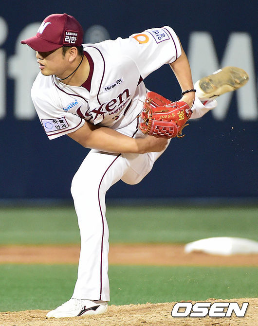 9회초 KIA 공격 때 마운드에 오른 넥센 투수 손승락이 힘차게 공을 뿌리고 있다.