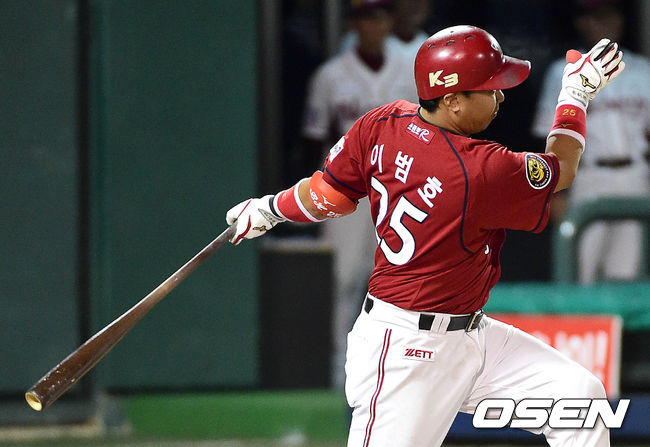 9회초 KIA 공격 2사 2, 3루 상황 이범호가 추격의 2타점 적시 좌전안타를 날리고 있다.