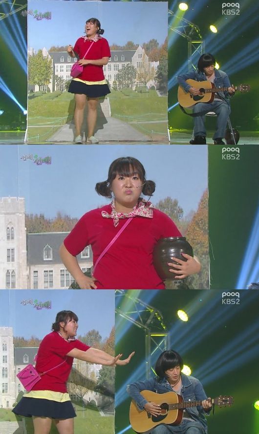 이수지는 6일 오후 방송된 KBS 2TV ‘개그콘서트’의 ‘선배, 선배!’ 코너에서 정명훈에게 “빨간 옷 입으니 어떤 것 같냐”며 미모 칭찬을 요구했다.