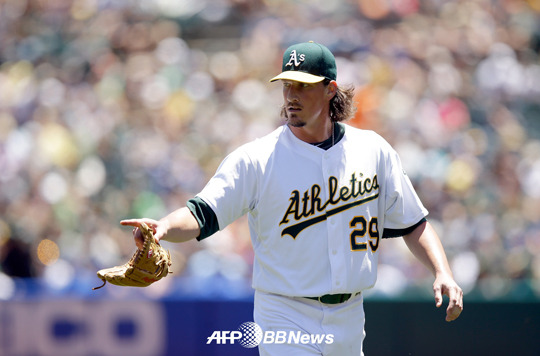 우완 강속구 투수 제프 사마자(29)가 오클랜드 데뷔전서 선발승을 따냈다.
