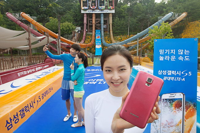 삼성전자가 5일부터 스마트폰 중 세계 최초로 광대역 LTE-A를 지원하는 '갤럭시 S5 광대역 LTE-A' 출시를 기념해 캐리비안 베이에서 소비자 체험 행사를 실시했다고 밝혔다.
