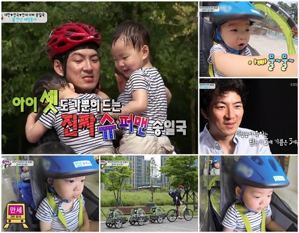 송일국과 그의 삼란성 쌍둥이 아들 대한, 민국, 만세가 지난 6일 방송된 KBS 2TV 예능프로그램 ‘해피선데이-슈퍼맨이 돌아왔다’에 첫 등장했다.
