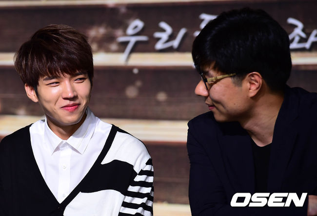남우현이 성준해 감독을 바라보며 미소짓고 있다.