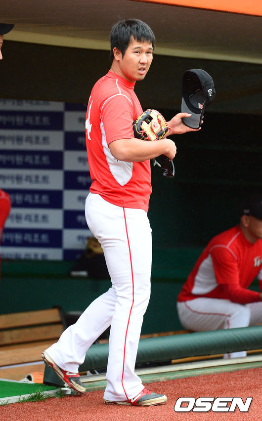 7일 오후 부산 사직구장에서 열린 2014 한국야쿠르트 세븐 프로야구 롯데 자이언츠와 SK 와이번스의 경기전 부상 복귀한 SK 최정이 훈련에 나서고 있다.