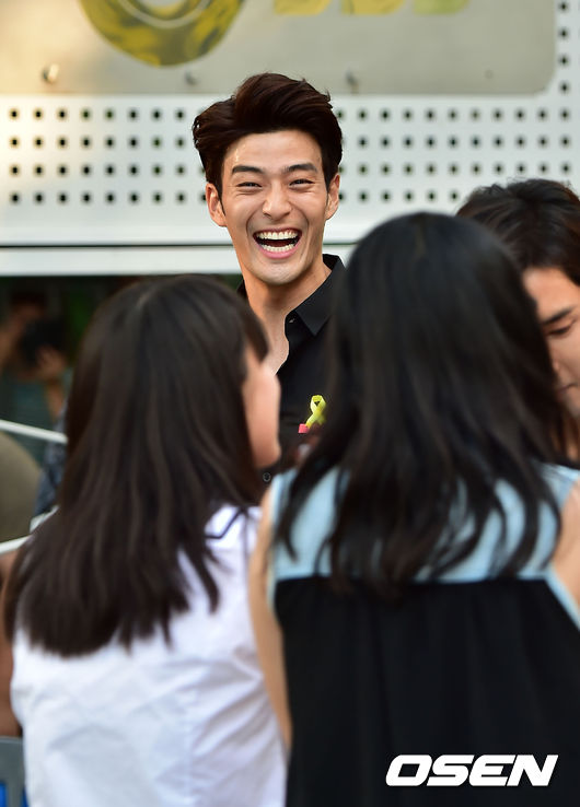 7일 오후 서울 목동 SBS 사옥 야외 주차장에서 진행된 SBS '정글의 법칙 in 인도양'의 첫 방송 이벤트 현장공개 행사에서 제임스가 구운 바나나를 나눠주며 환하게 웃고 있다.