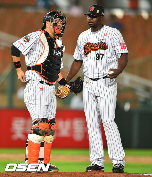 7일 오후 부산 사직구장에서 열린 2014 한국야쿠르트 세븐 프로야구 롯데 자이언츠와 SK 와이번스의 경기, 6회초 롯데 선발 유먼이 교체되고 있다.