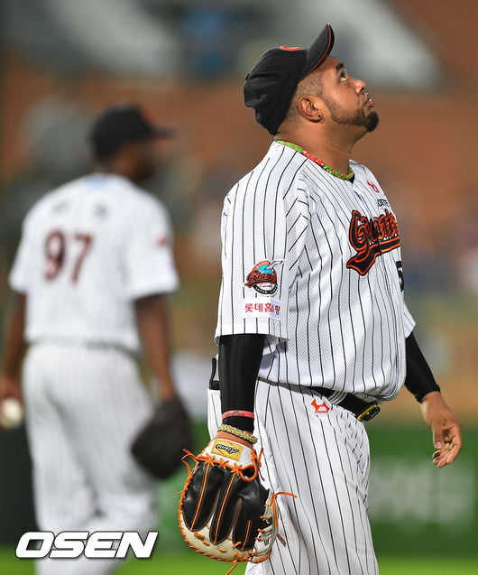 7일 오후 부산 사직구장에서 열린 2014 한국야쿠르트 세븐 프로야구 롯데 자이언츠와 SK 와이번스의 경기, 5회초 1사 SK 이재원의 파울타구를 놓친 롯데 히메네스 1루수가 아쉬워하고 있다.