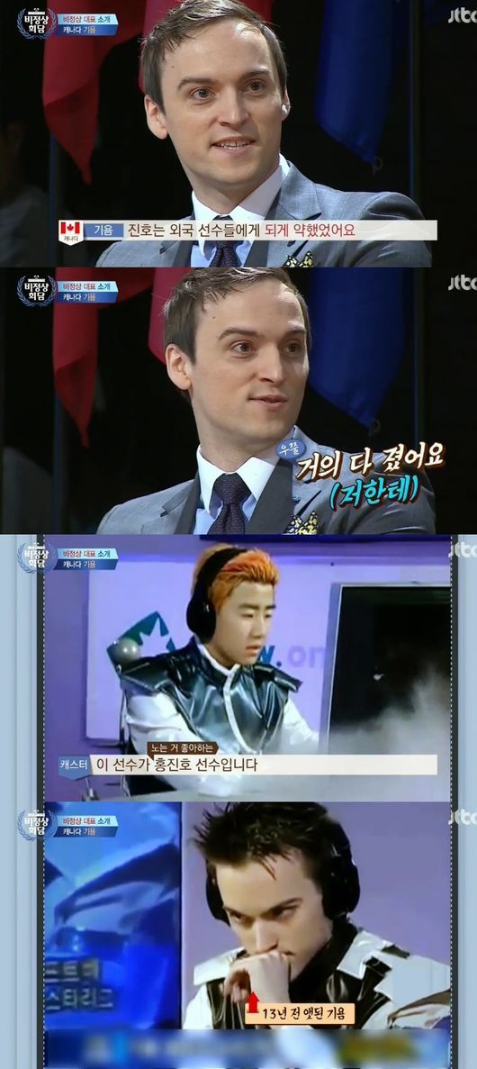 기욤은 "홍진호는 외국선수들에게 약하다. 거의 졌다"며 "진호가 노는 걸 좋아해서"라고 폭로해 웃음을 자아냈다.