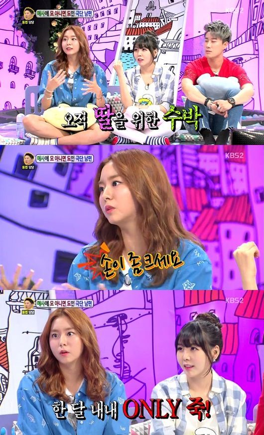 이에 대해 유이는 “우리 어머니와 비슷하다. 어머니는 내가 수박이 먹고 싶다고 하면 네 통을 사신다. 죽이 먹고 싶다고 하면 홈쇼핑에서 죽 만드는 기계를 사서 계속 죽을 만들어 주신다”고 말했다.